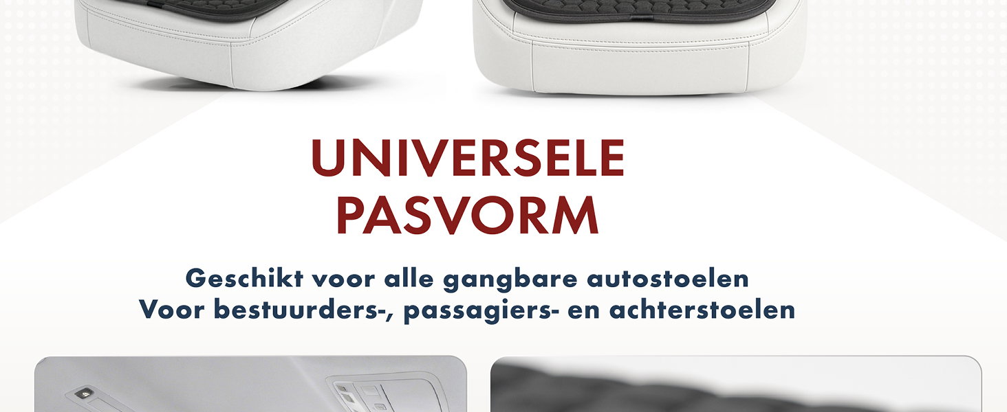 - Alleen geschikt voor standaard normale en sportstoelen (niet voor standaard RECARO-sportstoelen).