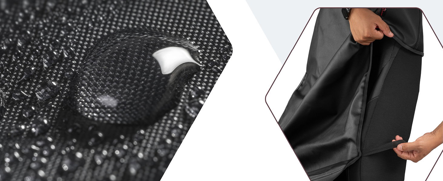 La housse de siège Guardian est fabriquée dans un matériau PVC résistant et enduit, facilement lavable. Avec un appui-tête intégré, elle s'adapte sans problème à la plupart des modèles de voiture courants. La housse de siège est 100% imperméable et antisalissure, ce qui permet de protéger au mieux vos sièges d'origine. De plus, la housse de siège est résistante aux éraflures, robuste, résistante à l'usure et extrêmement durable. Grâce à sa forme universelle, elle s'adapte à la plupart des sièges de voiture courants et n'entrave pas le fonctionnement de votre airbag latéral. Votre siège chauffant est également disponible sans restriction.
