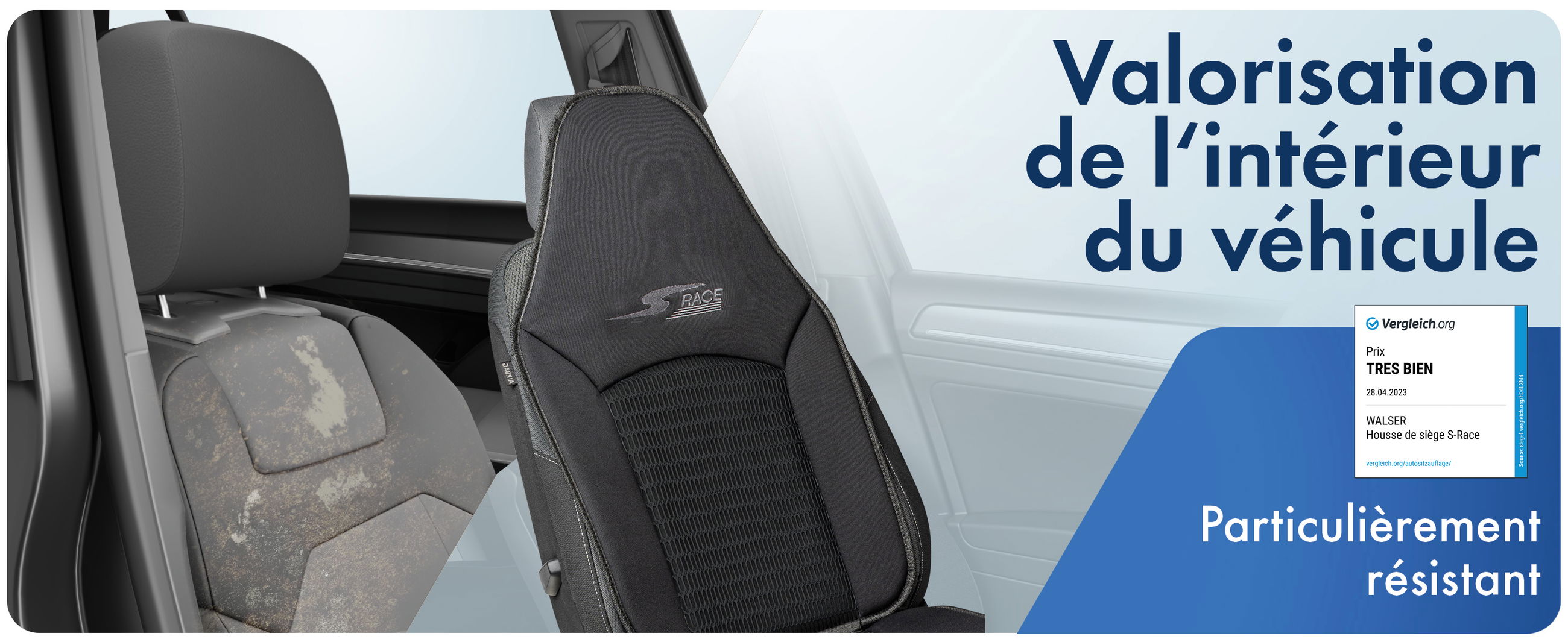 Le couvre-siège S-Race Highback ne fait pas qu'attirer les regards sur votre voiture, il vous procure également une toute nouvelle sensation de conduite. Le rembourrage en mousse souple de 16 mm offre un confort maximal - idéal pour les trajets courts ou longs. Que votre véhicule soit équipé d'appuie-tête standard ou d'appuie-tête Highback intégrés, la garniture de siège s'adapte parfaitement.
