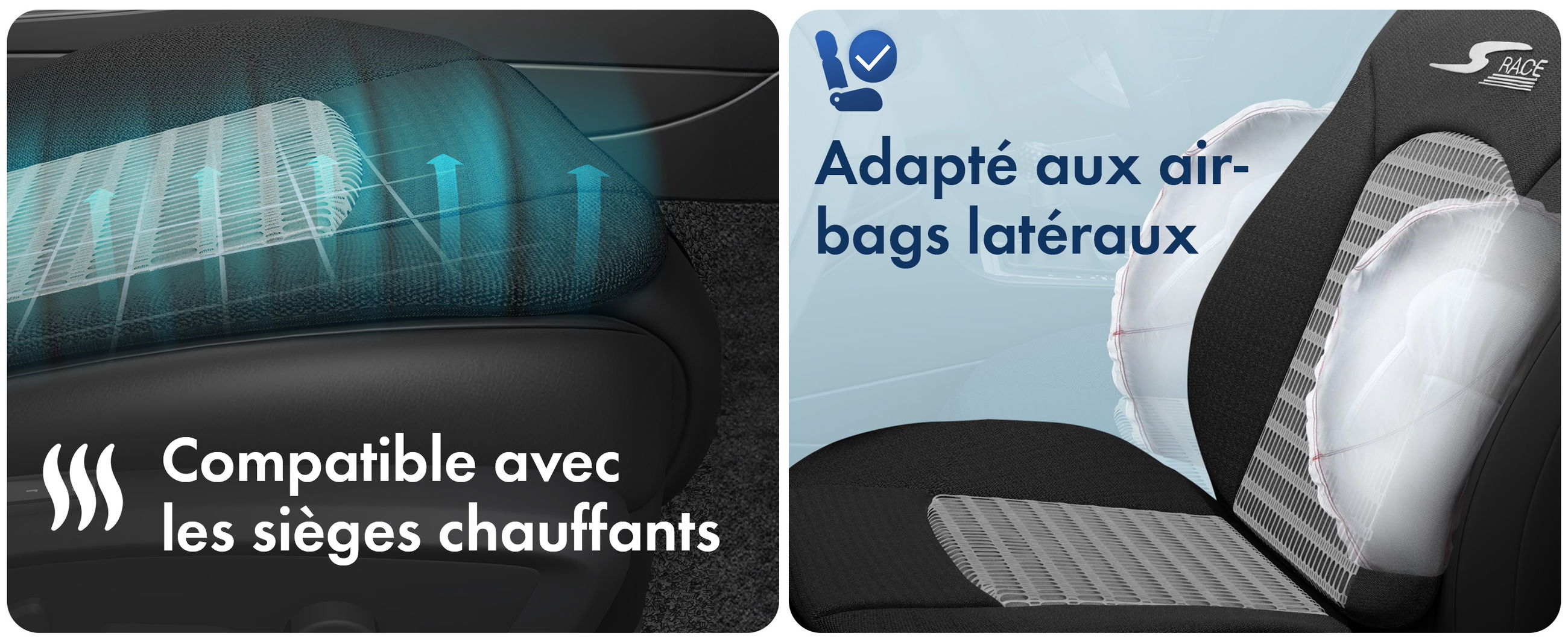 - Uniquement approprié pour sièges normaux et sport standard (mais non pas pour les sièges sport RECARO standard).