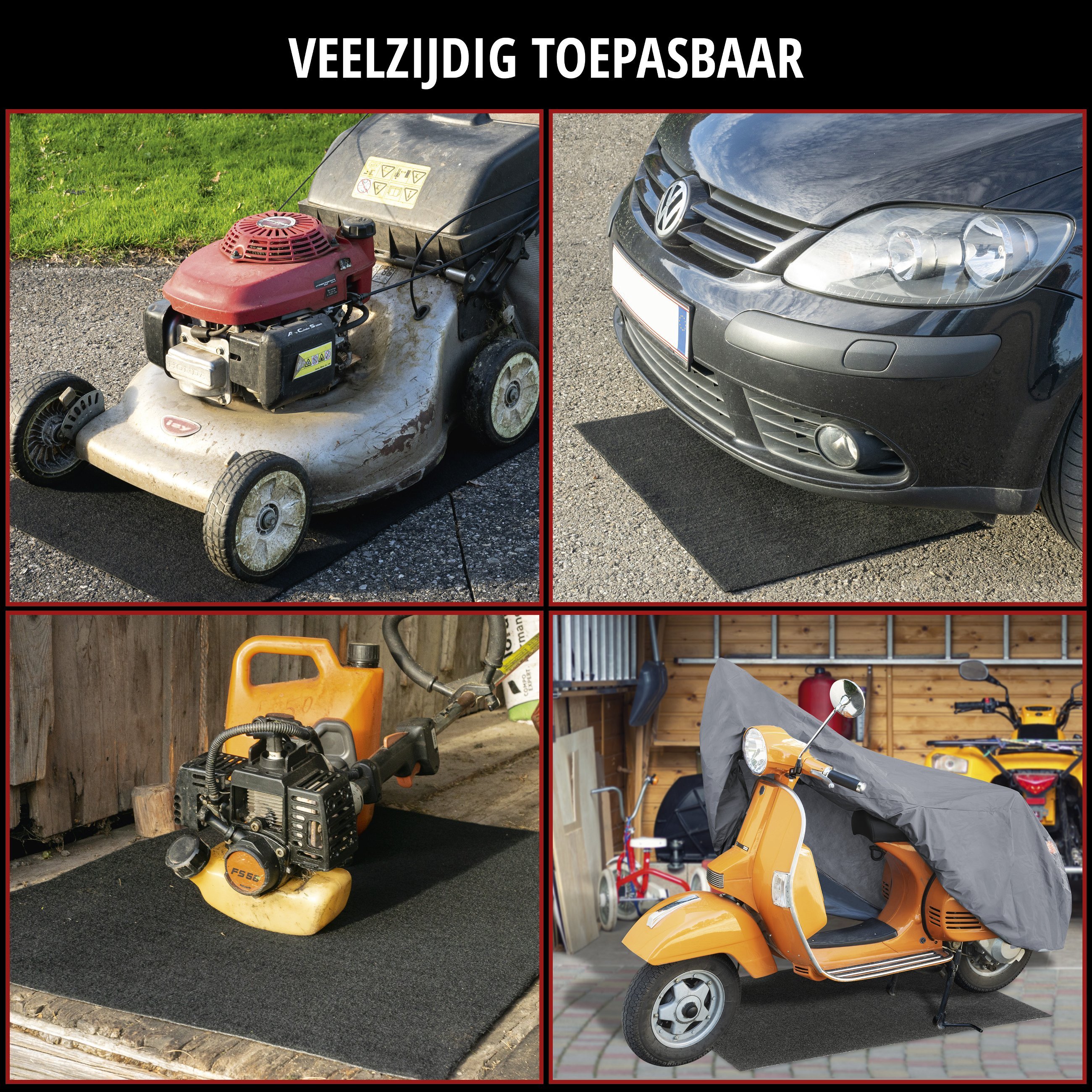 De meeste van onze voertuigen of tuinapparaten worden met brandstof gebruikt en hebben daarom ook olie nodig, zodat de motor goed werkt. Vaak gebeurt het dan dat de auto in de garage olie lekt en lelijke vlekken op de vloer achterlaat. Ook bij de grasmaaier kan het gebeuren dat er olie of een beetje benzine uitloopt en de vloer in het tuinhuis vuil maakt. Om de vloer vrij te houden van lelijke vlekken die vaak niet meer kunnen worden verwijderd, is er nu de olieopvangmat Clean Max in het formaat van ca. 60x90cm.
