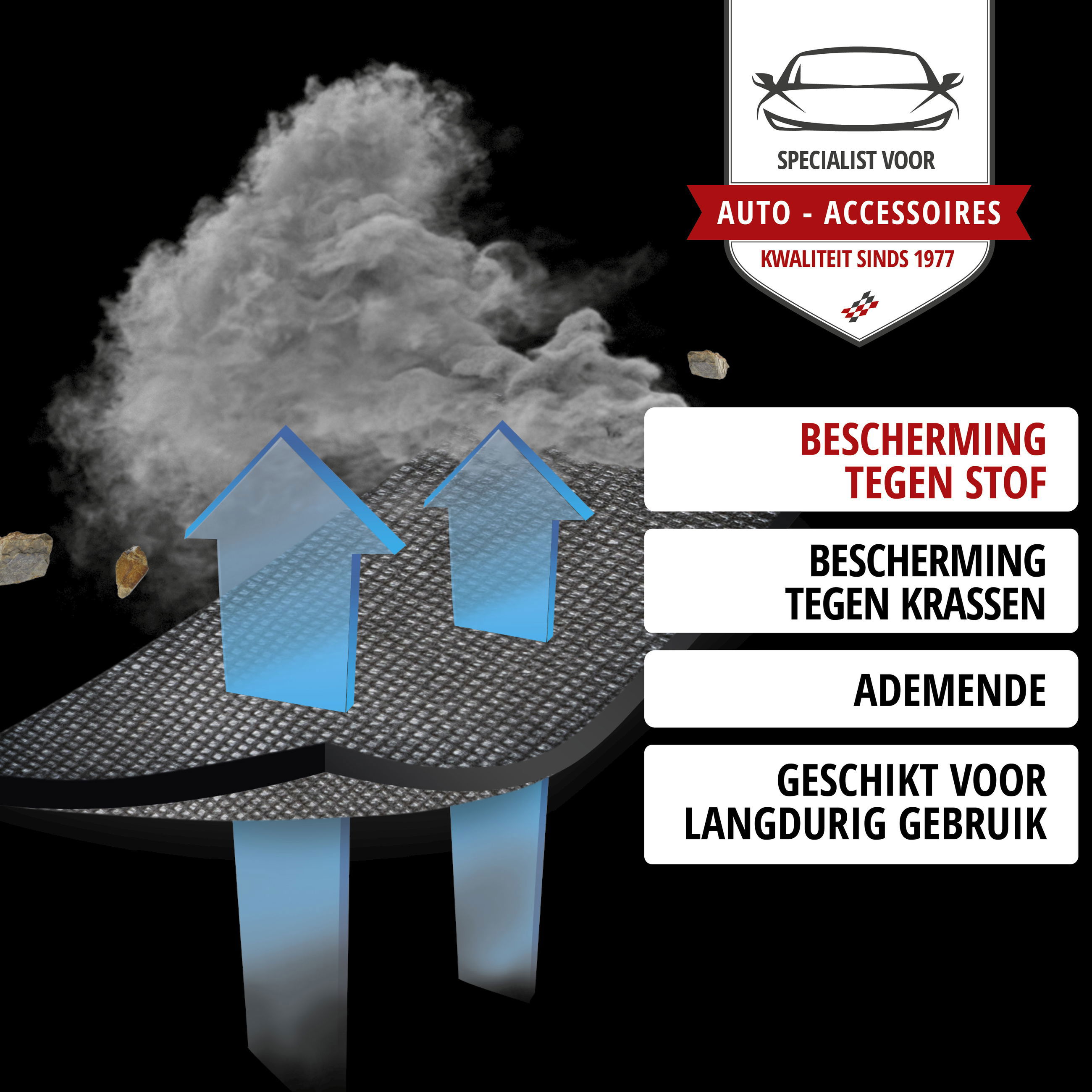 U wilt uw wagen beslist tegen sneeuw, vorst en verontreinigingen beschermen, omdat deze zeer belangrijk voor u is. Daarom stalt u deze in de winter altijd in de garage. Om ook bij de opslag een goede bescherming tegen stof en verontreinigingen te kunnen waarborgen en de lak te sparen, is het essentieel om uw auto ook binnenshuis te beschermen. Voor deze toepassing is de autoafdekhoes Indoor Eco in de kleur grijs-zwart zeer geschikt.