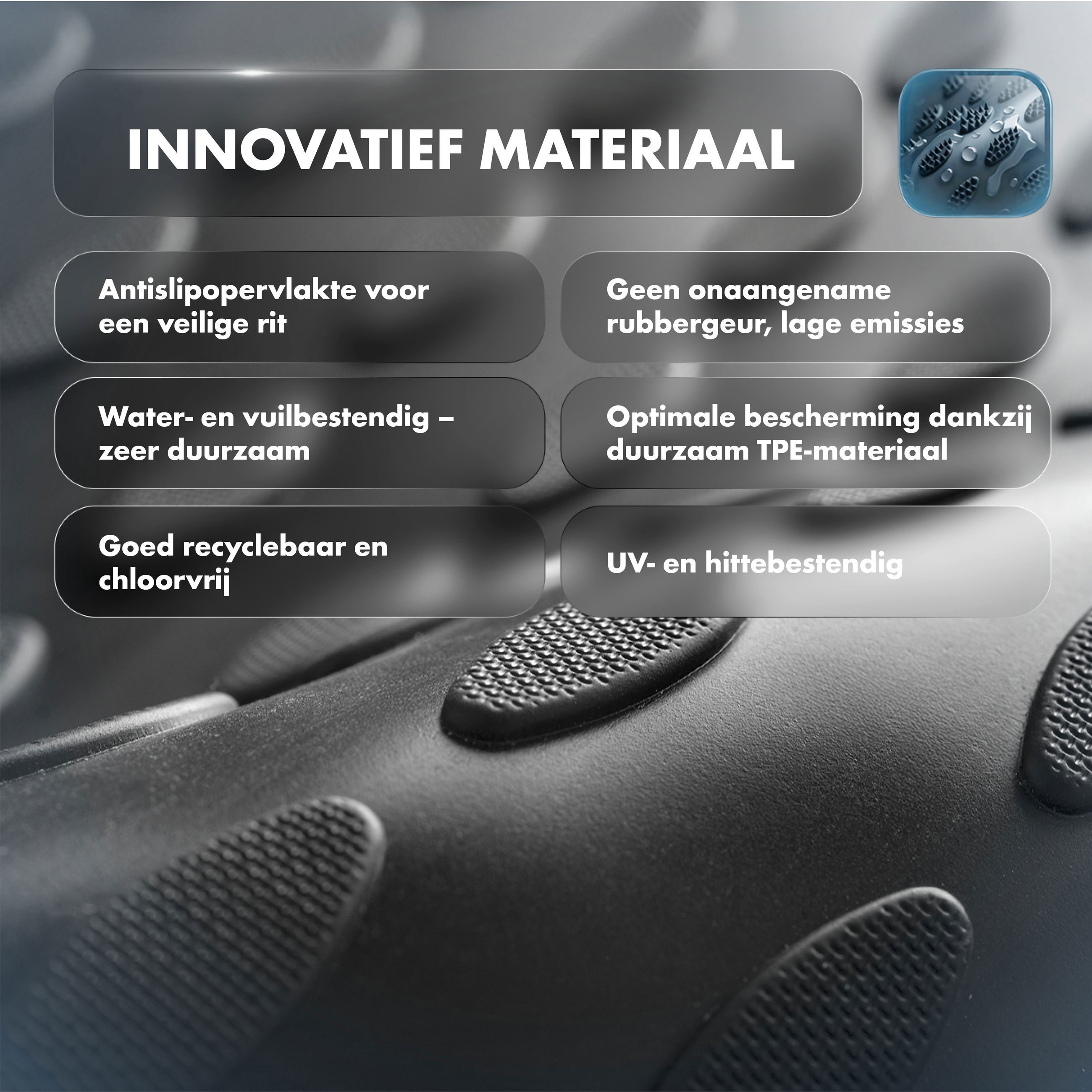 - Van innovatief TPE-materiaal, randhoogte ca. 24 mm