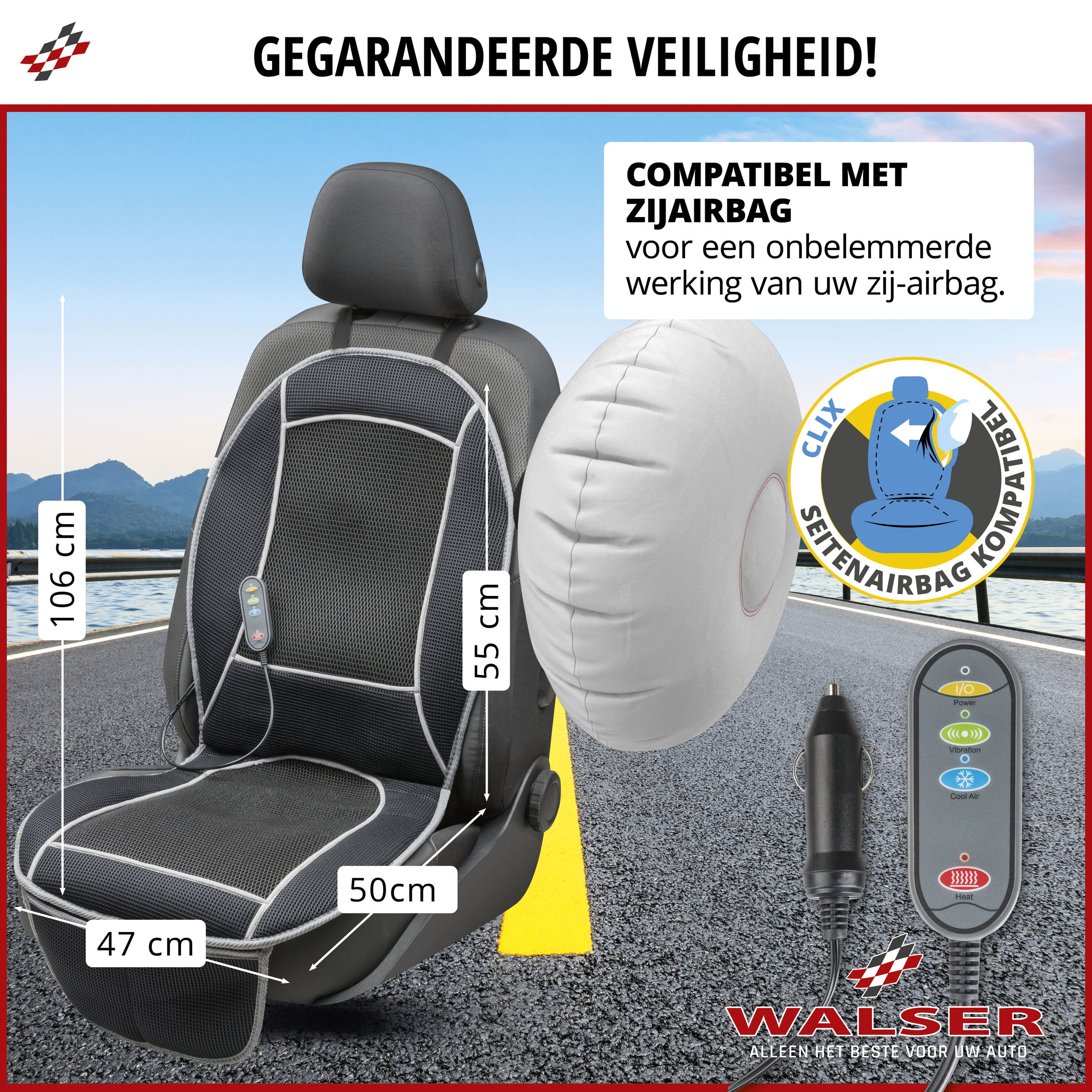 Iedereen die veel met de auto reist, is bekend met de wisselende temperaturen. In de zomer is het veel te warm en in de winter trekt de kou naar binnen. De Coolheat-zetelhoes combineert drie handige functies in één product: hij verwarmt je in de winter, koelt je in de zomer en de massagefunctie zorgt het hele jaar door voor een ontspannen rijervaring.